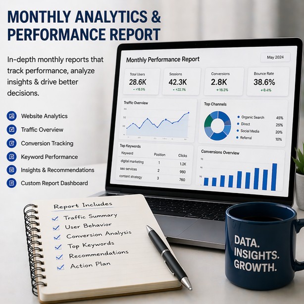 Monthly analytics & performance report is a professional service tailored for businesses, founders, and growing brands looking for dependable execution and measurable value.